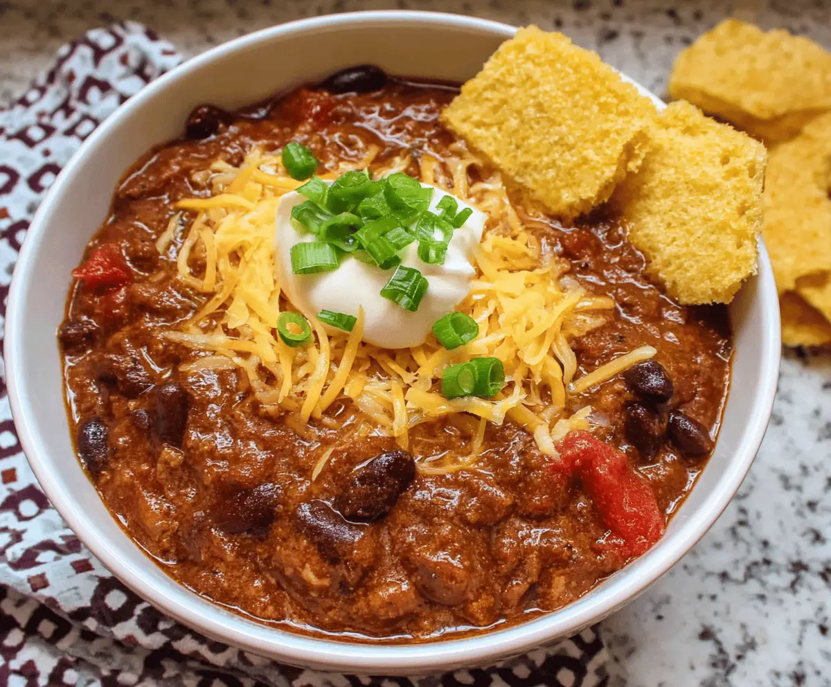 Don’t forget to add cornbread cubes or tortilla chips on the side or as a garnish. It’s the perfect accompaniment to your cozy, hearty chili!